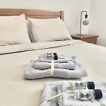 كل غرفة نوم تأتي مع وسائد محشوة بالزغب ووسائد محشوة بالريش ووسائد من الريش. الحمام يشمل شطافة بيديه وحوض الاستحمام.
